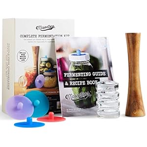 Masontops Complete Mason Jar Fermentation Kit – Pickle Kit, Sauerkraut Making Kit Kimchi Container – Fermentation Airlock Lids Wide Mouth Mason Jars