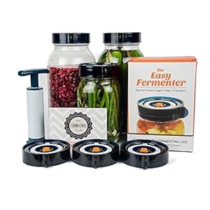 • The Easy Fermenter Fermentation Lids - Airlock Fermenting Lids for wide mouth mason jars (3 Lids + 1 Pump, Jars Not… $25.99