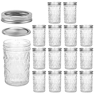 VERONES Mason Jars 8 OZ, 8 OZ Canning Jars Jelly Jars With Regular Lids, Ideal for Jam, Honey, Wedding Favors, Shower Favors, 15 PACK