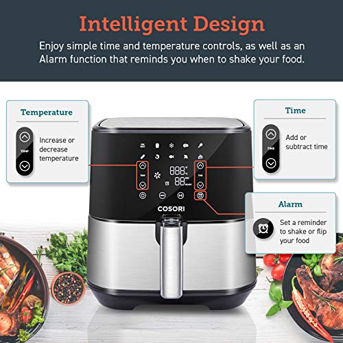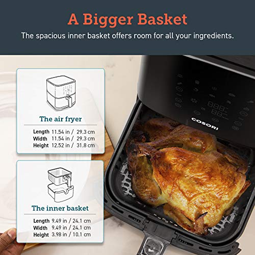 Designed in California, COSORI Square air fryer, with little footprint, much more suitable on countertop and save your space. Stainless Steel design is better fit for kitchen. 100 easy and tasty COSORI recipes get you cooking right away